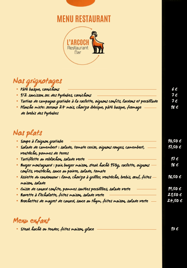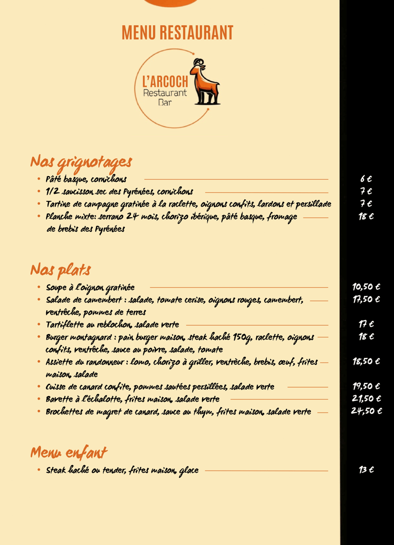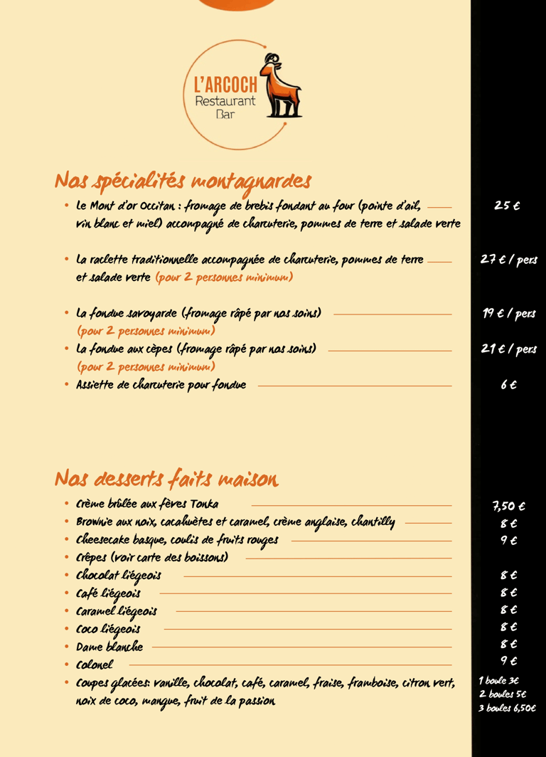 Réservez votre table à L'ARCOCH et profitez d'une soirée mémorable à la montagne.